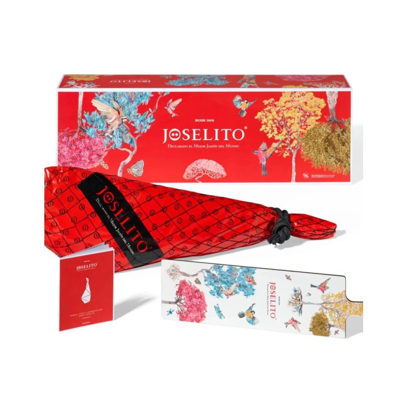 El Jamón Joselito Gran Reserva se destaca como un auténtico tesoro culinario. Esta pieza única se cura de manera completamente natural durante más de tres años en las bodegas naturales de Joselito. Su sabor cautivador y su inigualable jugosidad lo distinguen y lo consagran como el jamón más exquisito. Es una experiencia gastronómica que transciende y deleita los sentidos. Este jamón aclamado como el mejor del mundo se presenta en una edición especial, dentro de un precioso estuche que incluye una elegante tabla de presentación con una imagen de la nueva colección inspirada en las dehesas de Joselito.